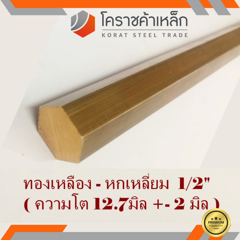 ทองเหลือง หกเหลี่ยม 1/2 นิ้ว เกรด C3604 (ประมาณ 12.7 มิล ) Brass Hexagon Bar ความยาวดูที่ตัวเลือกสินค้า
