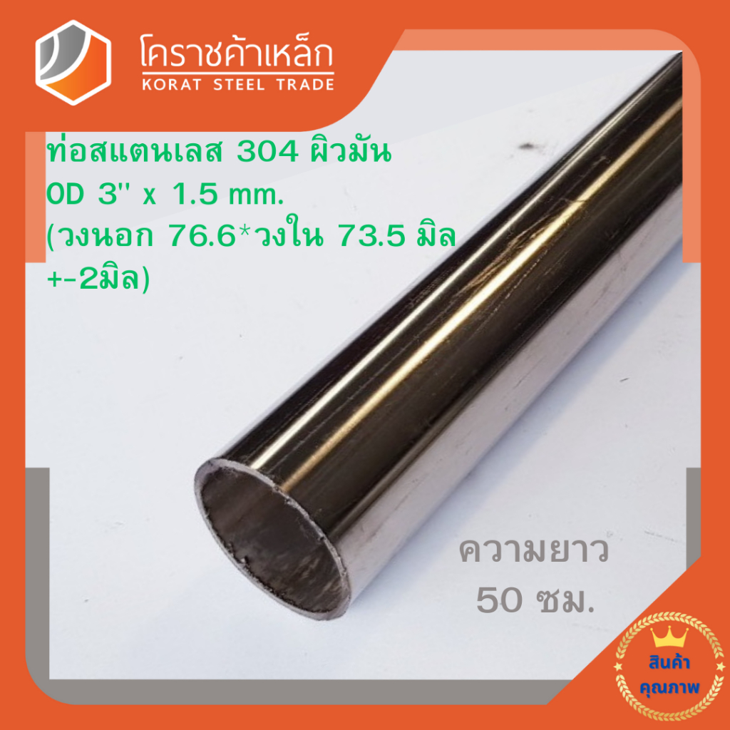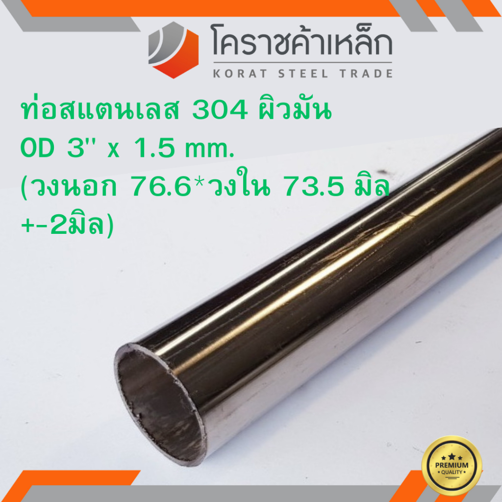 สแตนเลส ท่อกลม ผิวมัน วัดนอก 3 นิ้ว หนา 1.5 มิล เกรด 304 Stainless Pipe ความยาวดูที่ตัวเลือกสินค้า