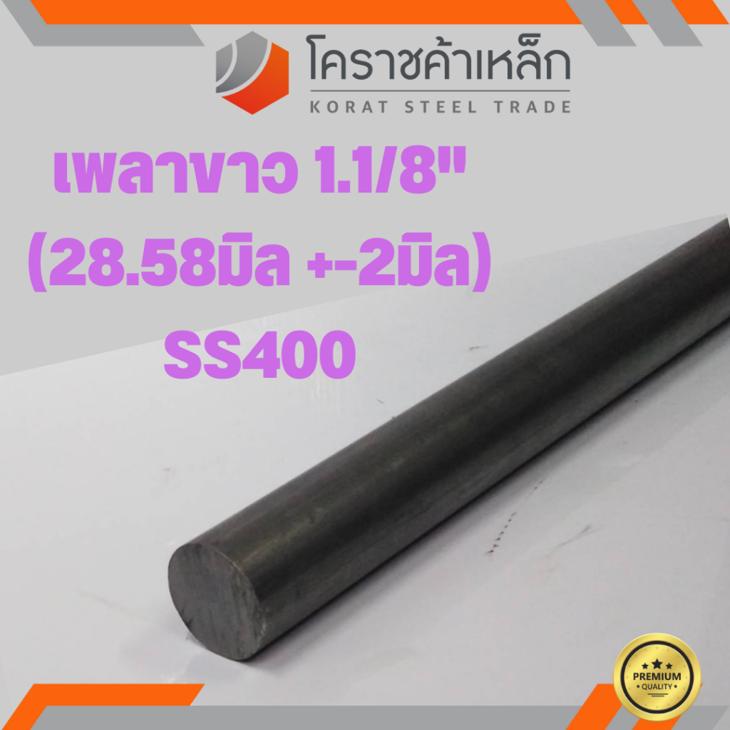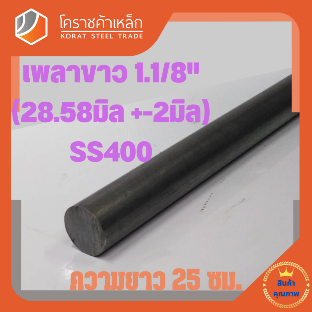 เหล็กเพลา กลม SS400 1.1/8 นิ้ว (ประมาณ 28.58 มิล ) เหล็กเพลาขาว SS400 Steel Round Bar ความยาวดูที่ตัวเลือกสินค้า