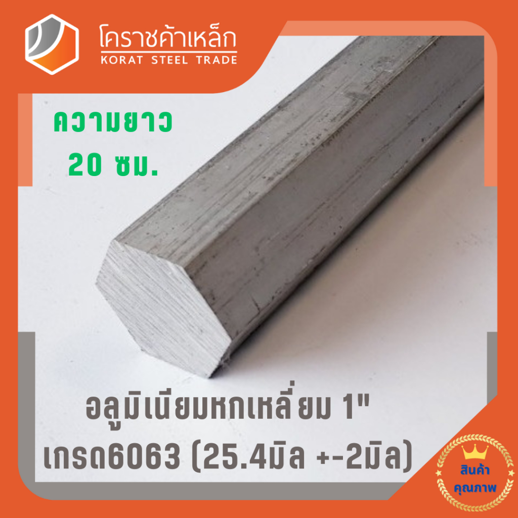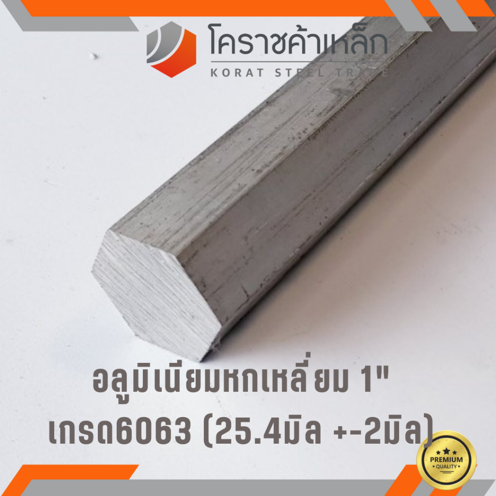 อลูมิเนียม หกเหลี่ยม 1 นิ้ว เกรด 6063 (ประมาณ 25.40มิล ) Aluminium Hexagon ความยาวดูที่ตัวเลือกสินค้า