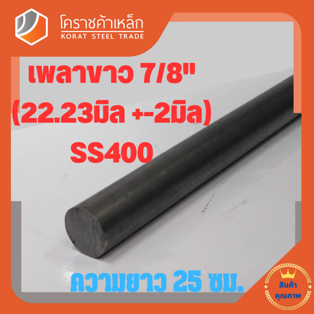 เหล็กเพลา กลม SS400 7/8 นิ้ว (ประมาณ 22.23 มิล ) เหล็กเพลาขาว SS400 Steel Round Bar ความยาวดูที่ตัวเลือกสินค้า
