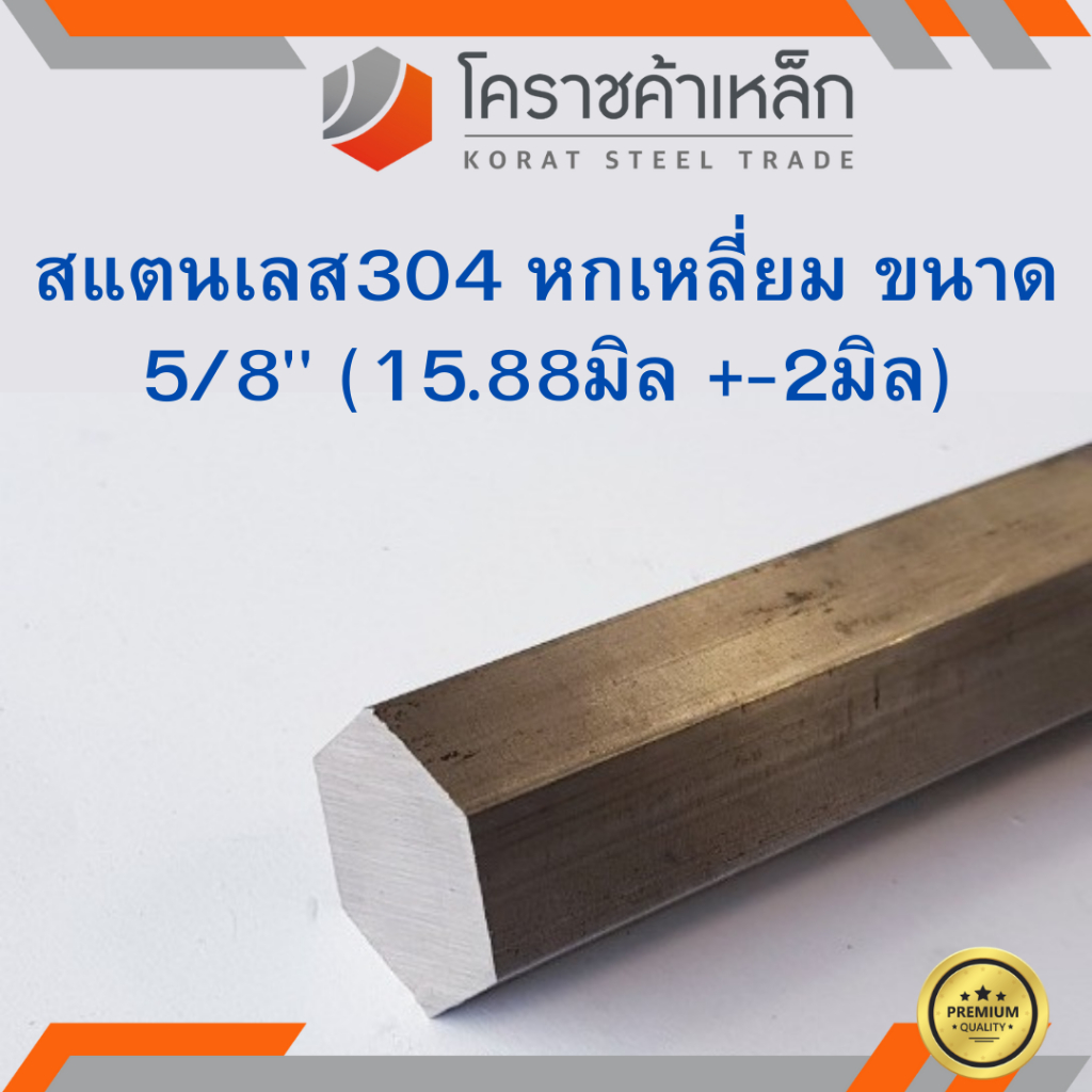 สแตนเลส หกเหลี่ยม ขนาด 5/8 นิ้ว เกรด 304 (ประมาณ 15.88 มิล ) Stainless Hexagon ความยาวดูที่ตัวเลือกสินค้า