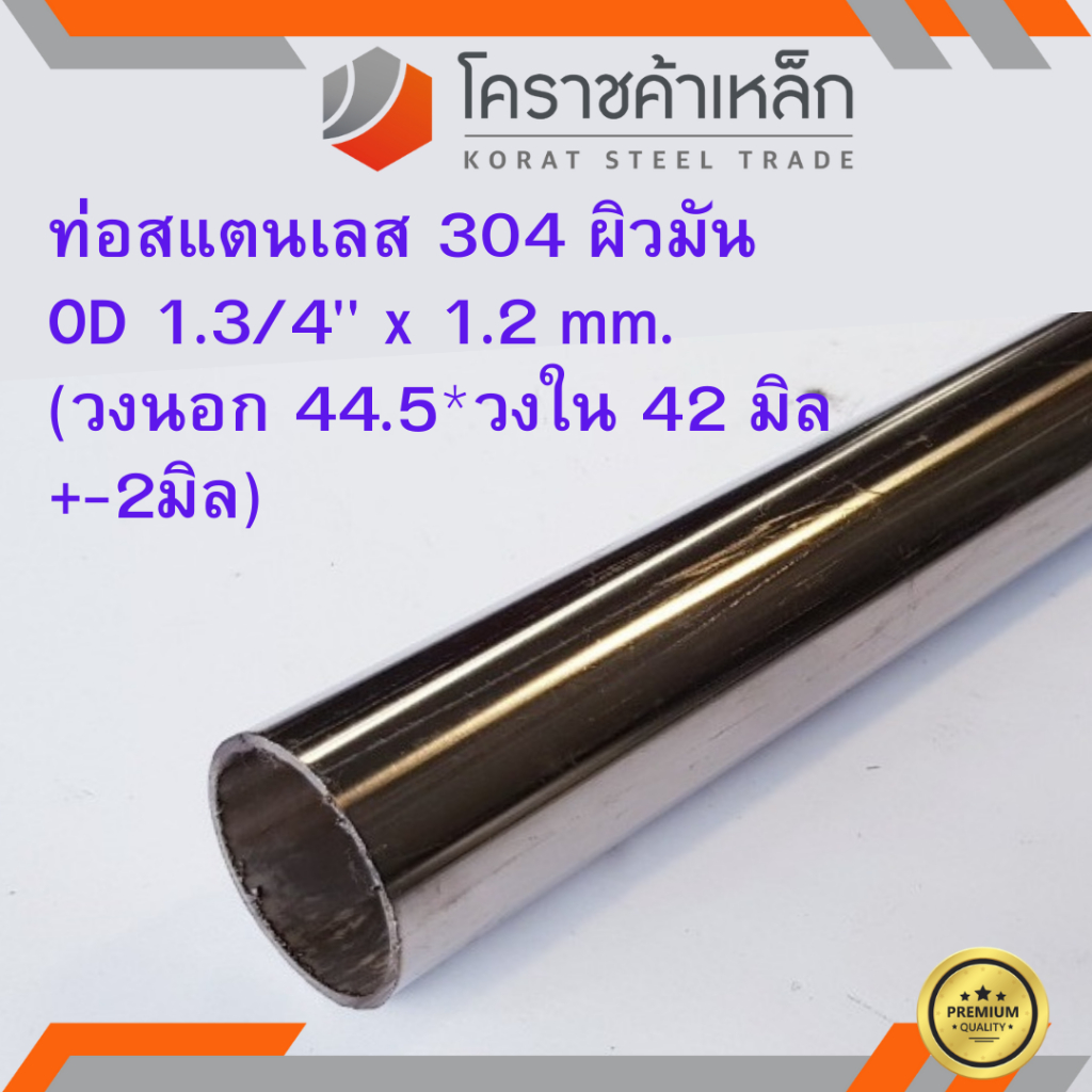 สแตนเลส ท่อกลม ผิวมัน วัดนอก 1.3/4 นิ้ว หนา 1.2 มิล เกรด 304 Stainless Pipe ความยาวดูที่ตัวเลือกสินค้า