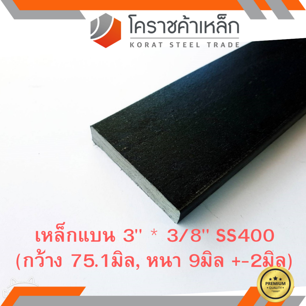 เหล็กแบน SS400 กว้าง 3 นิ้ว หนา 3/8 นิ้ว (*ประมาณ 75.1 มิล หนา 9 มิล ) แบนขาว Flat Bar ความยาวดูที่ตัวเลือกสินค้า