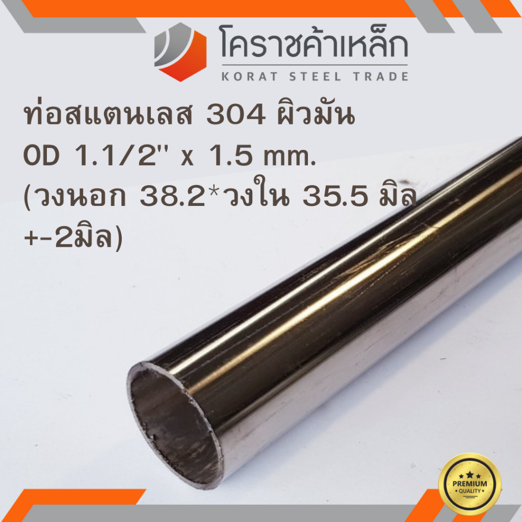 สแตนเลส ท่อกลม ผิวมัน วัดนอก 1.1/2 นิ้ว หนา 1.5 มิล เกรด 304 Stainless Pipe ความยาวดูที่ตัวเลือกสินค้า