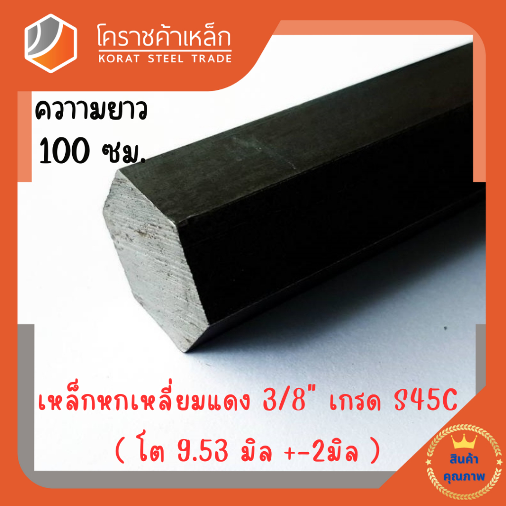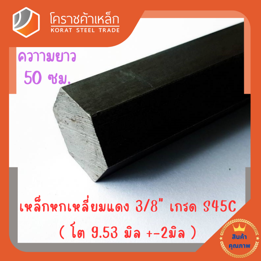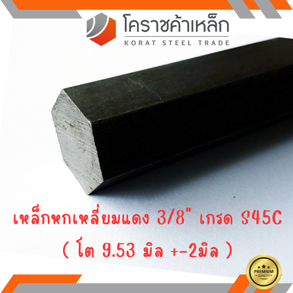 เหล็กหกเหลี่ยม S45C ขนาด 3/8 นิ้ว (ประมาณ 9.5 มิล) หกเหลี่ยมแดง Steel S45C Hexagon Bar ความยาวดูที่ตัวเลือกสินค้า
