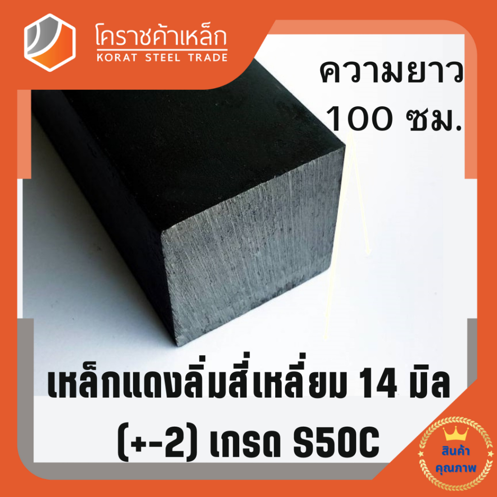 เหล็กสี่เหลี่ยม ตัน S50C 14 มิล สี่เหลี่ยมแดง S50C square Bar ความยาวดูที่ตัวเลือกสินค้า