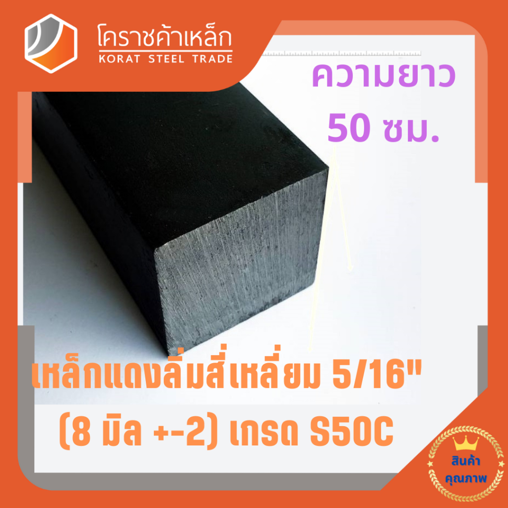 เหล็กสี่เหลี่ยม ตัน S50C 5/16 นิ้ว (ประมาณ 8 มิล ) สี่เหลี่ยมแดง S50C square Bar ความยาวดูที่ตัวเลือกสินค้า