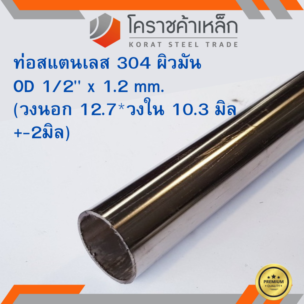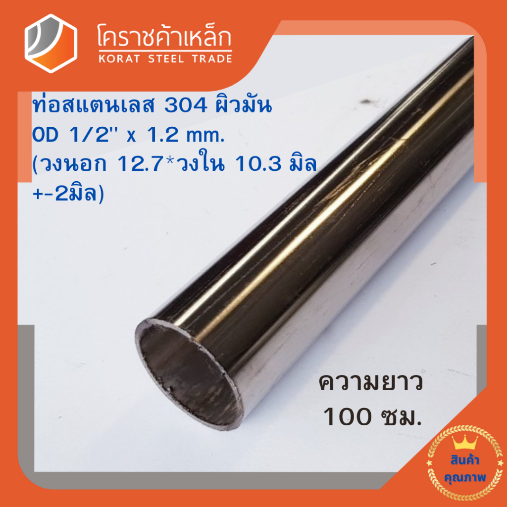 สแตนเลส ท่อกลม ผิวมัน วัดนอก 1/2 นิ้ว หนา 1.2 มิล เกรด 304 Stainless Pipe ความยาวดูที่ตัวเลือกสินค้า