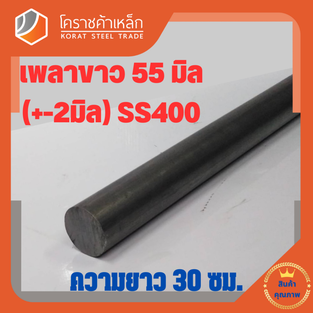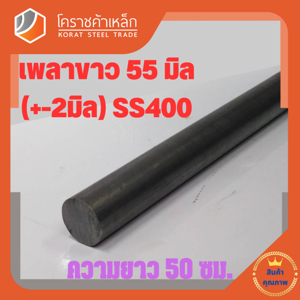 เหล็กเพลา กลม SS400 ขนาด 55 มิล เพลาขาว SS400 Steel Round Bar ความยาวดูที่ตัวเลือกสินค้า