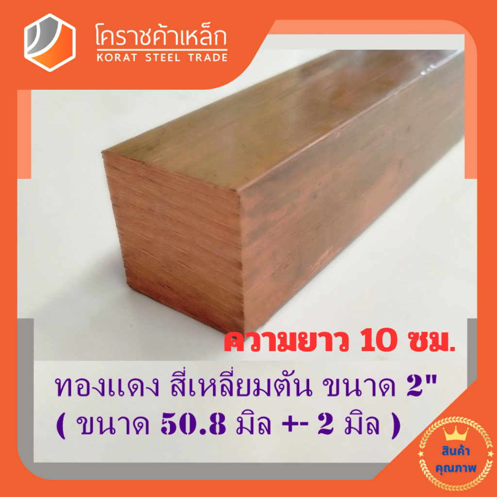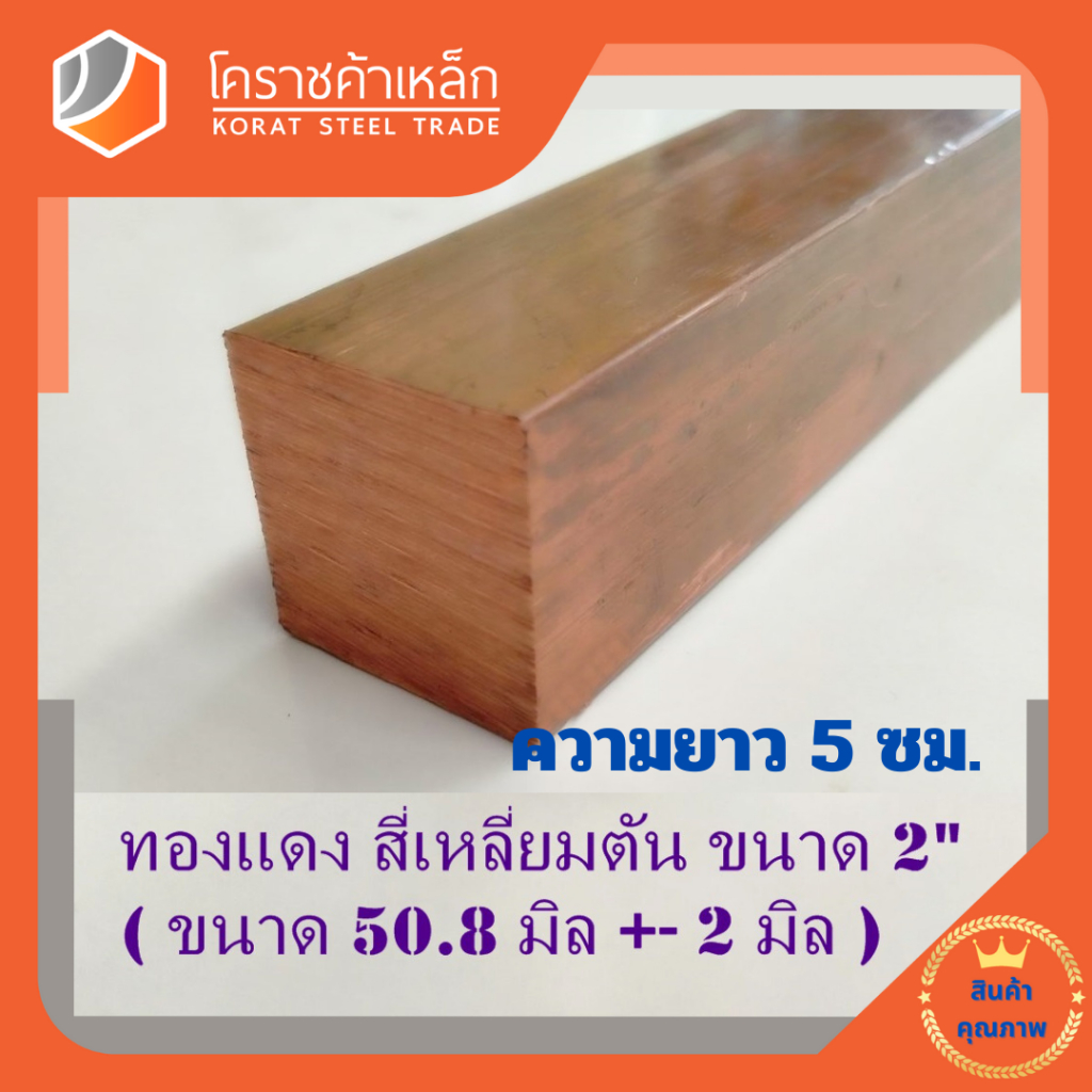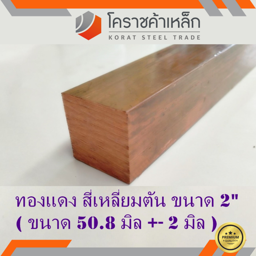 ทองแดง สี่เหลียมตัน 2 นิ้ว เกรด C1100 (ประมาณ 50.8 มิล ) Copper square Bar ความยาวดูที่ตัวเลือกสินค้า