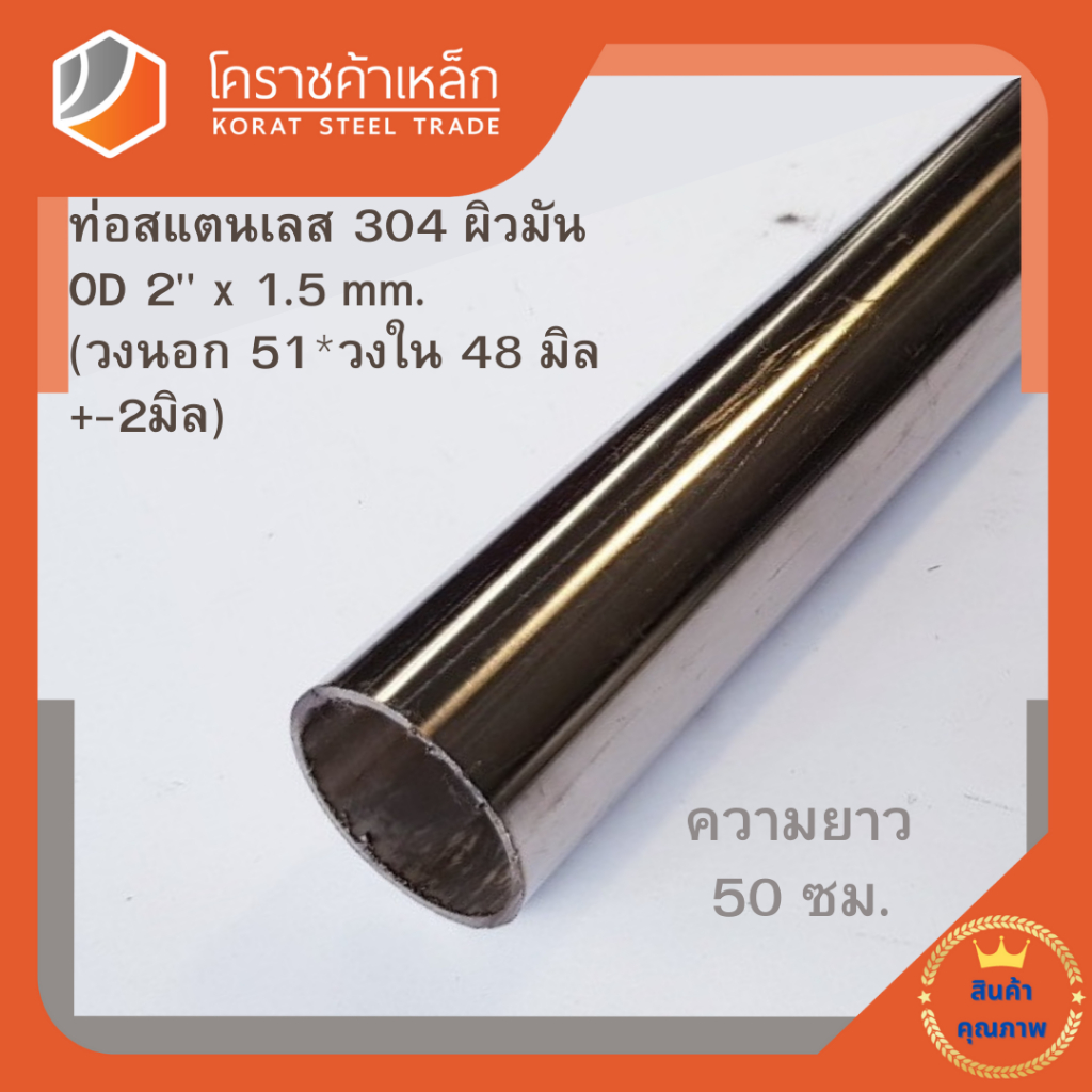 สแตนเลส ท่อกลม ผิวมัน วัดนอก 2 นิ้ว หนา 1.5 มิล เกรด 304 Stainless Pipe ความยาวดูที่ตัวเลือกสินค้า