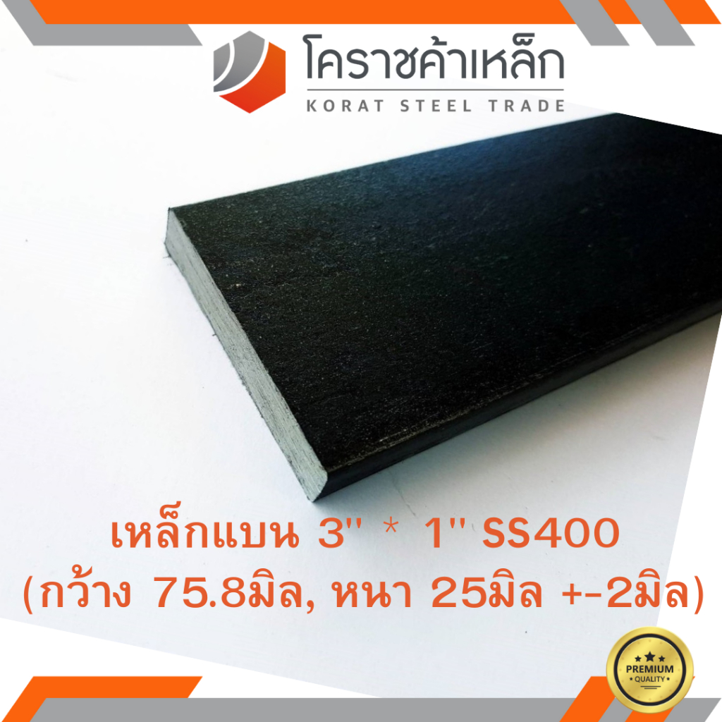 เหล็กแบน SS400 กว้าง 3 นิ้ว หนา 1 นิ้ว (*ประมาณ 75.8 มิล หนา 25 มิล ) แบนขาว Flat Bar ความยาวดูที่ตัวเลือกสินค้า
