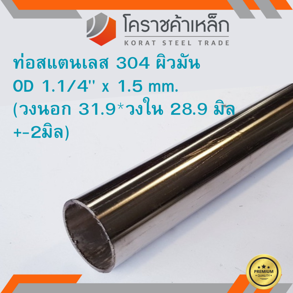 สแตนเลส ท่อกลม ผิวมัน วัดนอก 1.1/4 นิ้ว หนา 1.5 มิล เกรด 304 Stainless Pipe ความยาวดูที่ตัวเลือกสินค้า