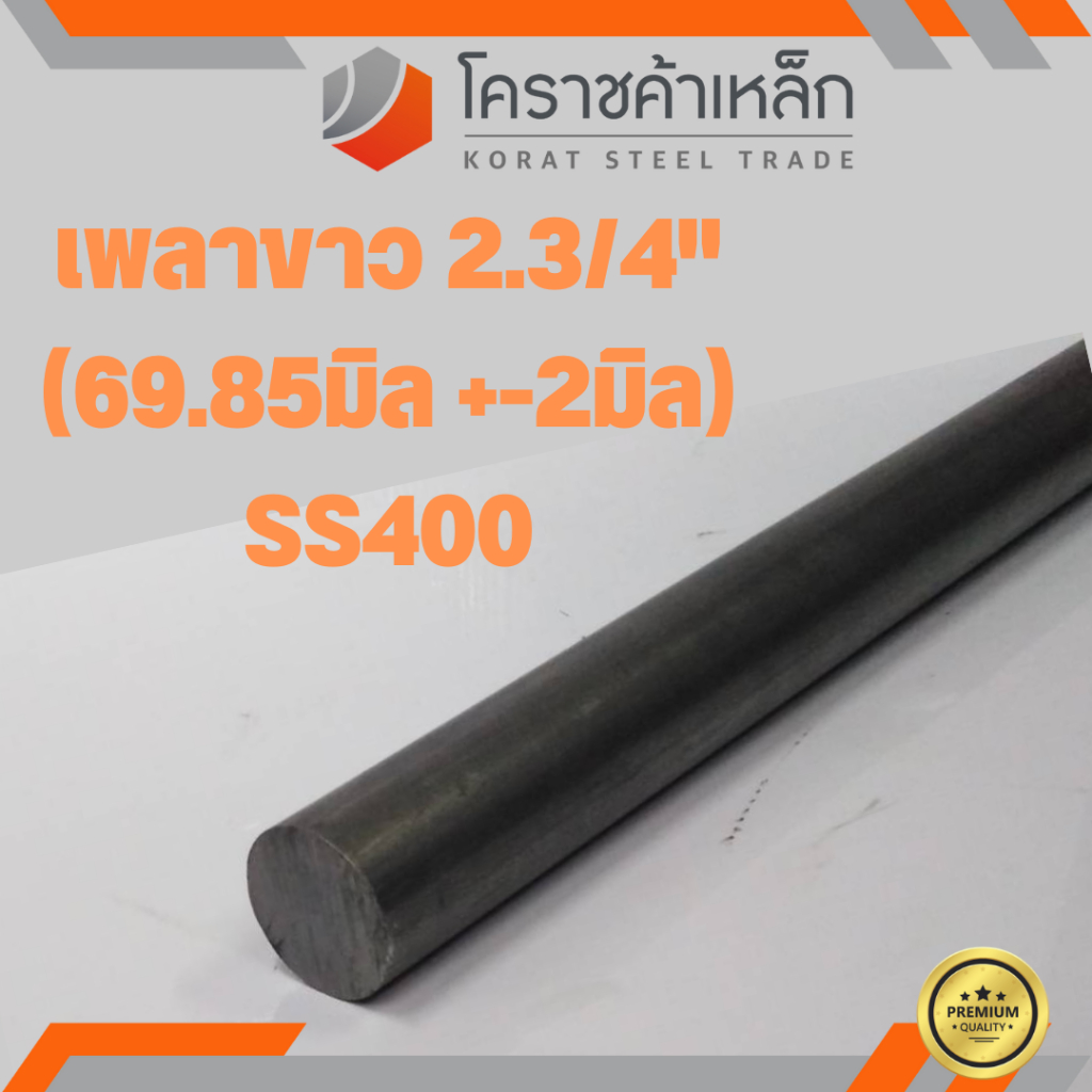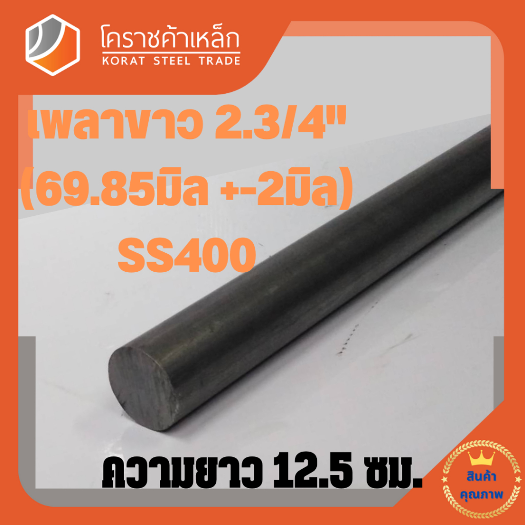 เหล็กเพลา กลม SS400 2.3/4 นิ้ว (ประมาณ 69.85 มิล ) เหล็กเพลาขาว SS400 Steel Round Bar ความยาวดูที่ตัวเลือกสินค้า
