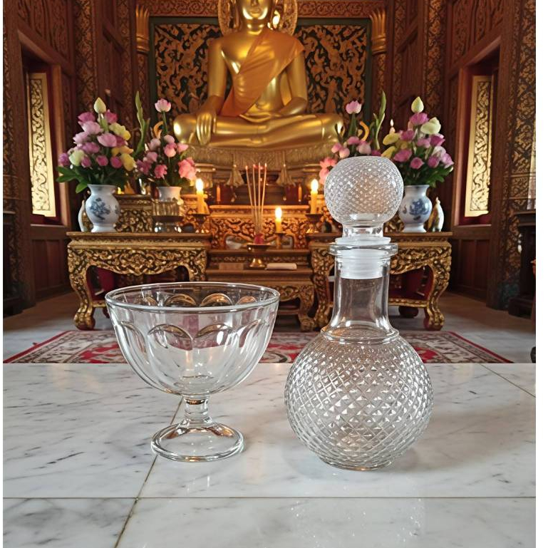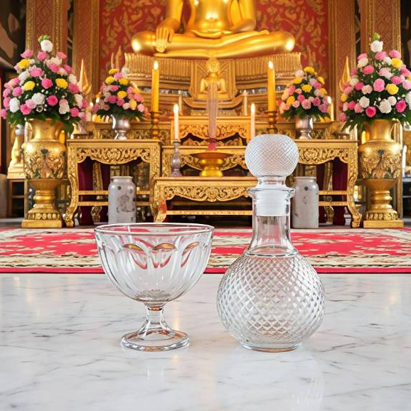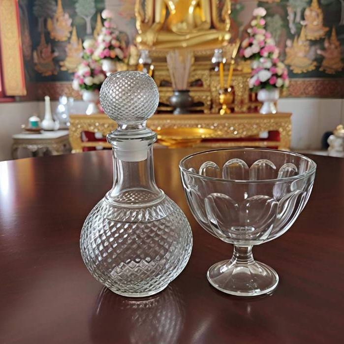 ชุดกรวดน้ำคริสตัส ชุดใหญ่ ที่กรวดน้ําพร้อมแก้วรอง สวยงาม คุณภาพดี ขนาด 500 ml.รุ่น 4411+ICLS1776