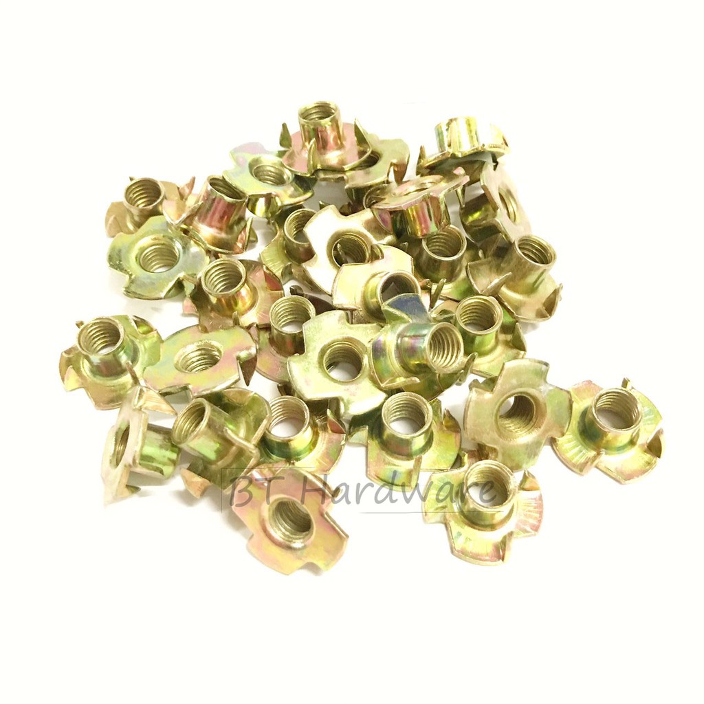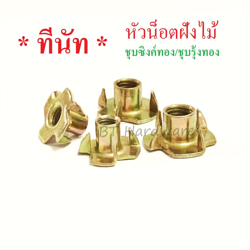 ทีนัต หัวน็อตไม้ หัวน็อตฝัง ชุบซิงค์ทอง (T-NUTสำหรับยึดลำโพง)