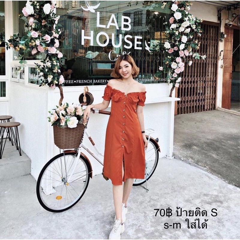 เดรสปาดไหล่สีส้มอิฐ น่ารักมาก