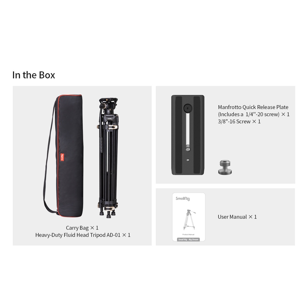 SmallRig 3751 / 3751ฺB Heavy-Duty Fluid Head Tripod AD-01 ขาตั้งกล้องวิดีโอหัวน้ำมัน รองรับเพลท Manfrotto และ DJI RS2