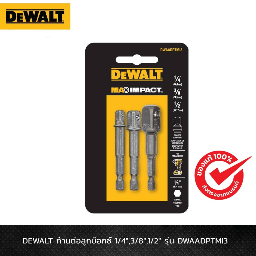 DEWALT รุ่น DWAADPTMI3 ก้านต่อลูกบ๊อกซ์ 1/4",3/8",1/2" / DW2547IR ก้านต่อลูกบ๊อกซ์ 1/2"