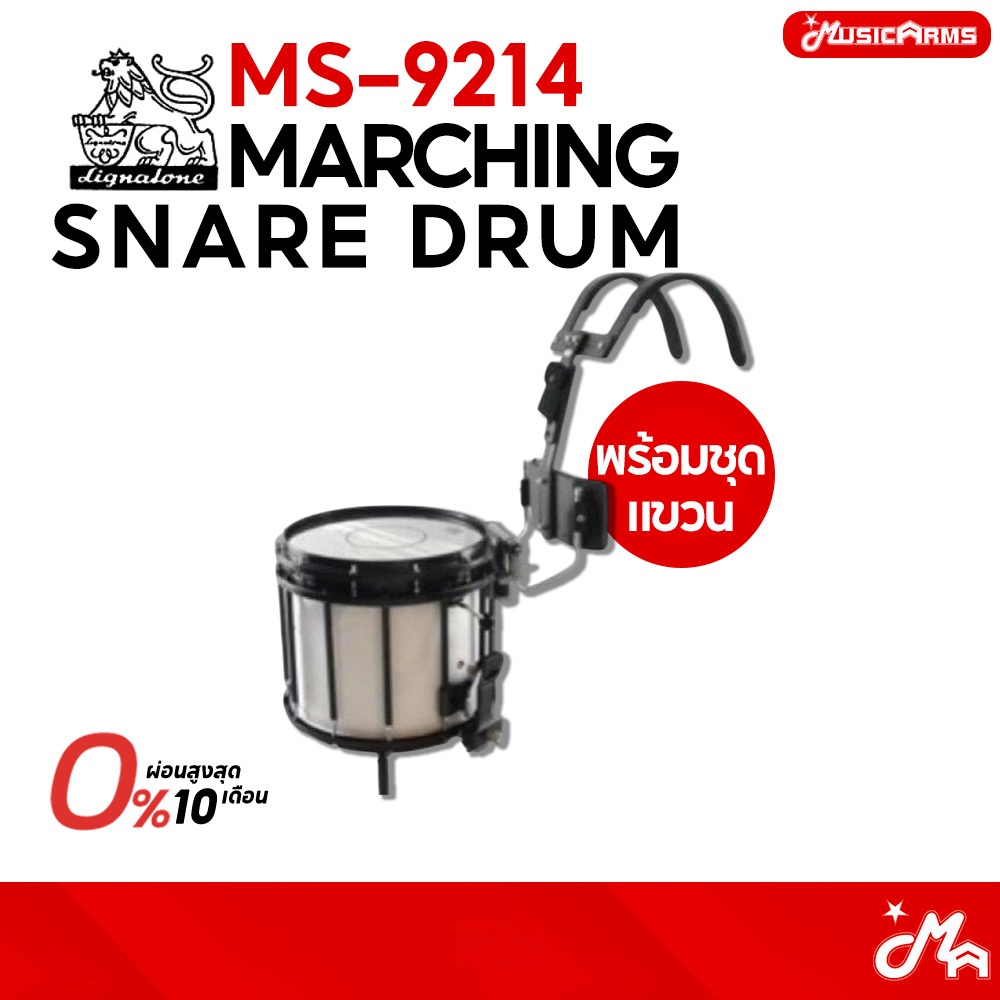 LIGNATONE Marching Snare Drum รุ่น MS-9214 ขนาด 14 นิ้ว กลองสแนร์มาร์ชชิ่ง พร้อมชุดขาแขวน Music Arms