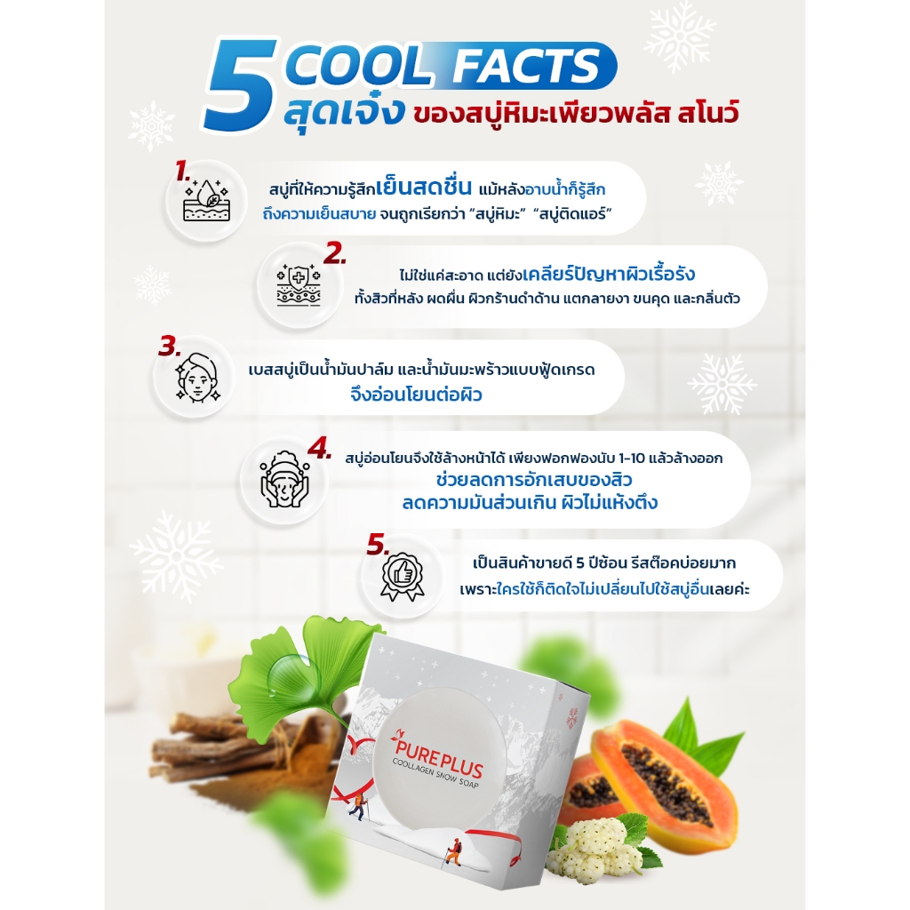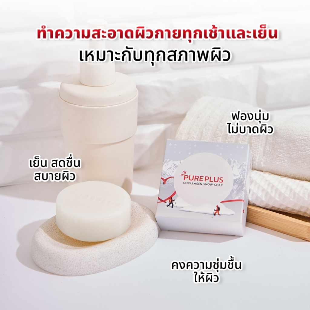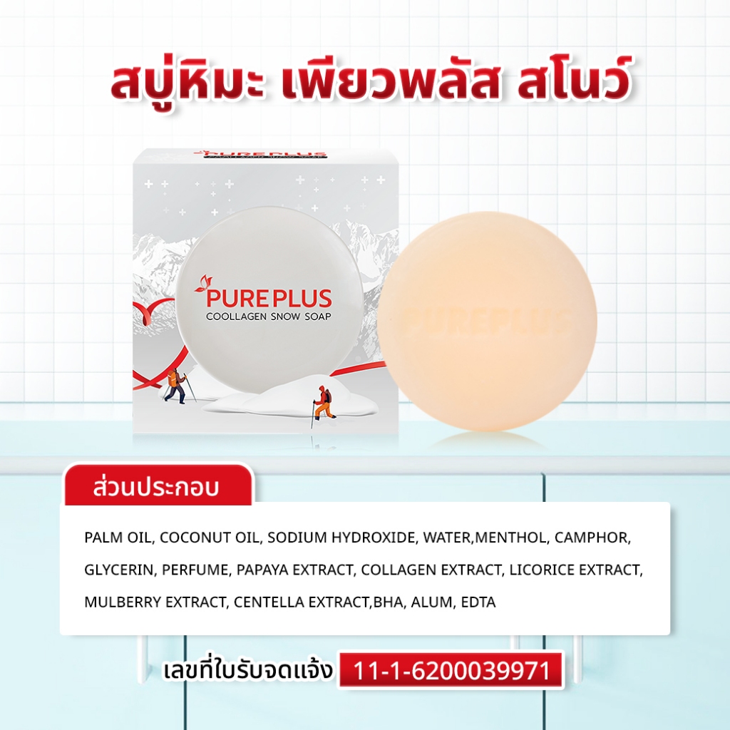 (2 ก้อน) สบู่หิมะ เพียวพลัส คูลลาเจน สโนว์ PUREPLUS Coollagen Snow Soap ช่วยเรื่องสิว ผิวเด้ง ออร่า