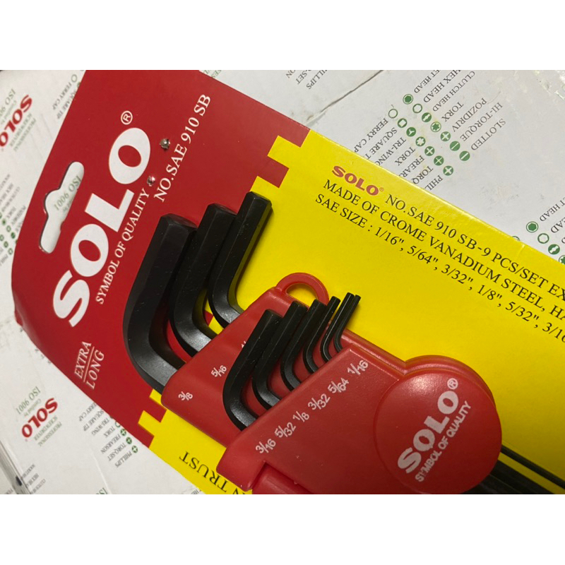 ประแจแอล ประแจหกเหลี่ยมหุน นิ้ว หกเหลี่ยมหุน 9ตัวชุด SOLO