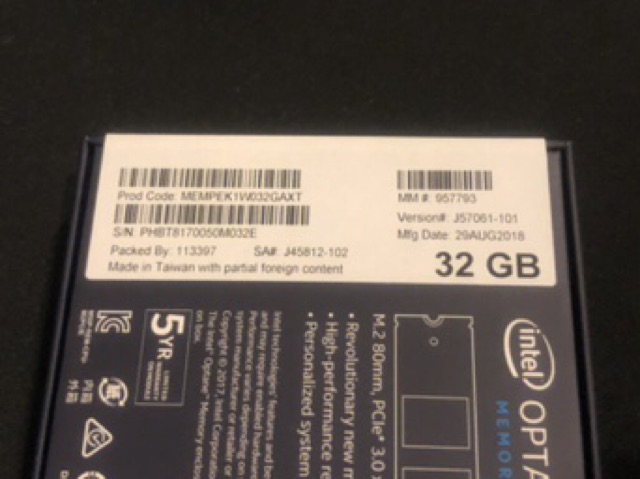 INTEL OPTANE MEMORY 32GB
