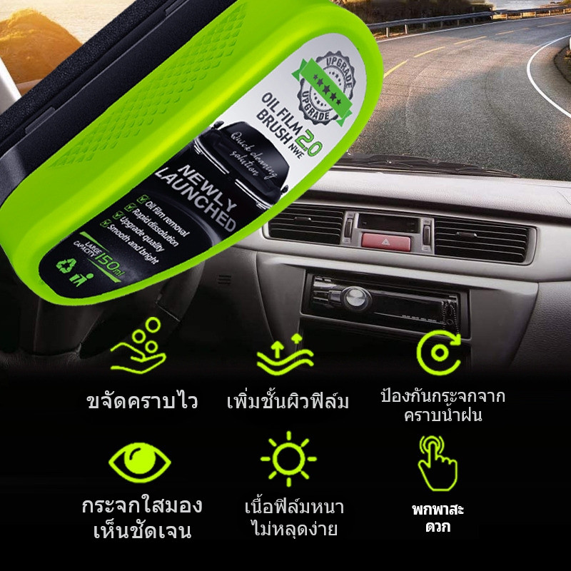 แปรงน้ํายาฟิล์มน้ํามันกระจกรถยนต์ กันคราบน้ำฝน กระจกใส รุ่นใหม่ ฟิล์มหนาขึ้น หน้าฝน (แบบแปรง) 150ml พร้อมส่งจากไทย