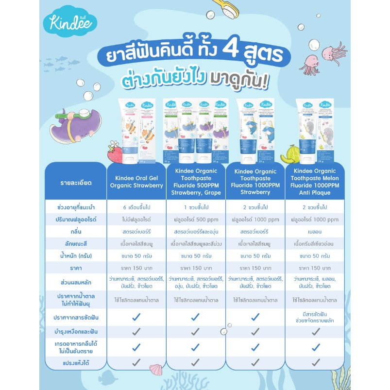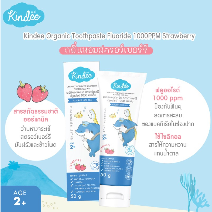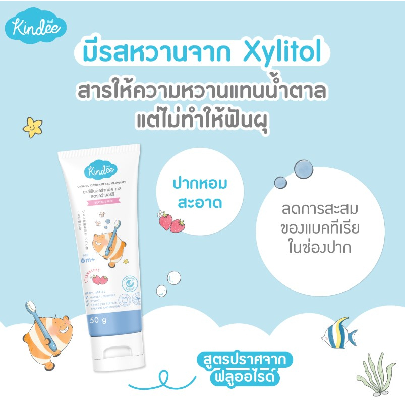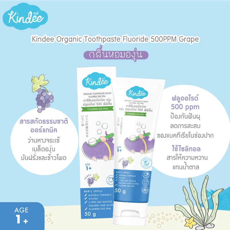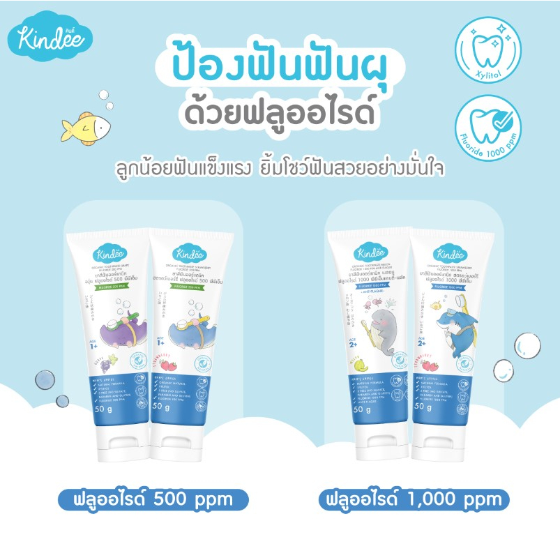 [1 หลอด] Kindee คินดี้ ยาสีฟันออร์แกนิค สำหรับเด็ก 1000 ppm [50 กรัม/หลอด] [เลือกสินค้า]
