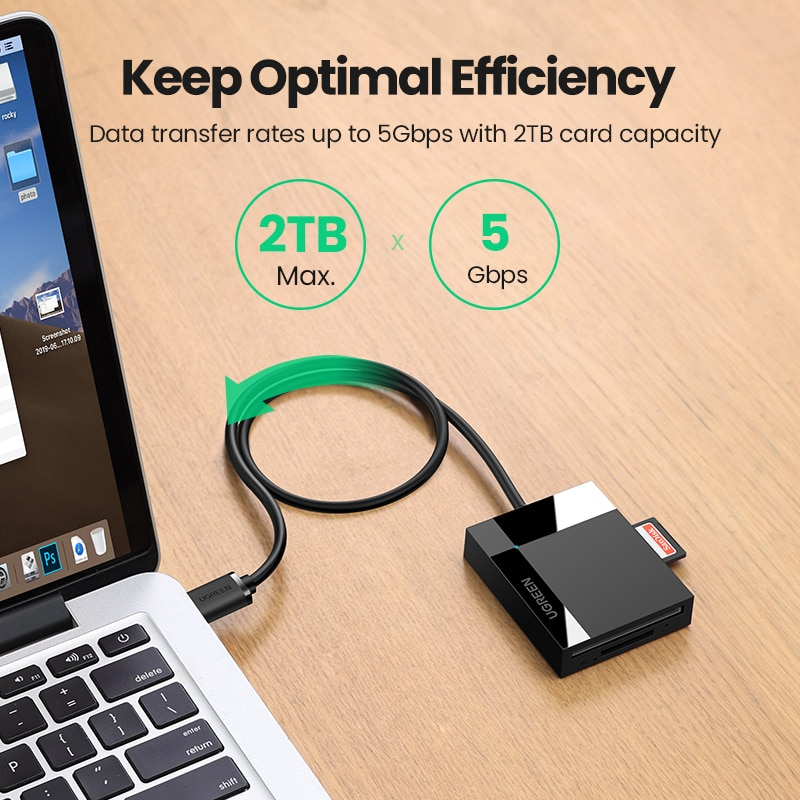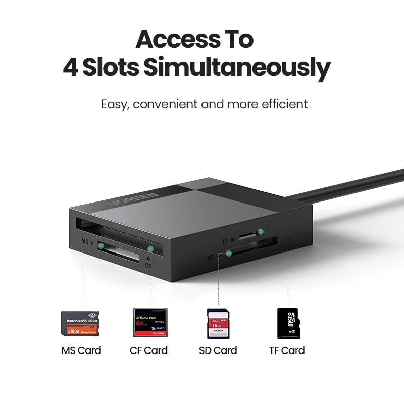 UGREEN รุ่น 30333 (USB-A) Hub USB 3.0 Card Reader Super Speed TF / SD / MS / CF สายยาว 50cm,100cm