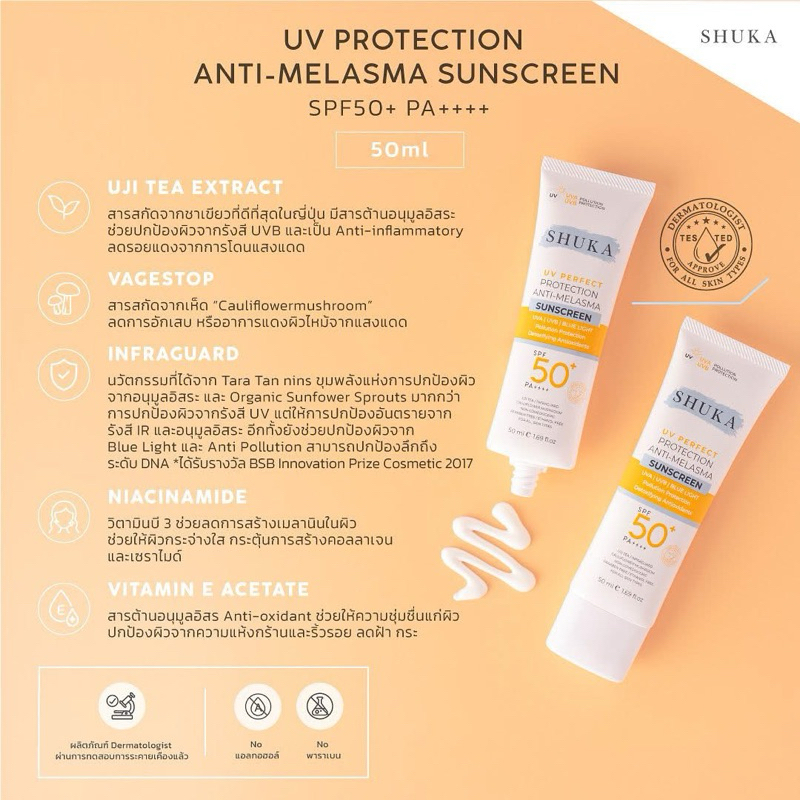 Shuka Sunscreen SPF50+ PA++++ 50 ml (พร้อมส่ง)