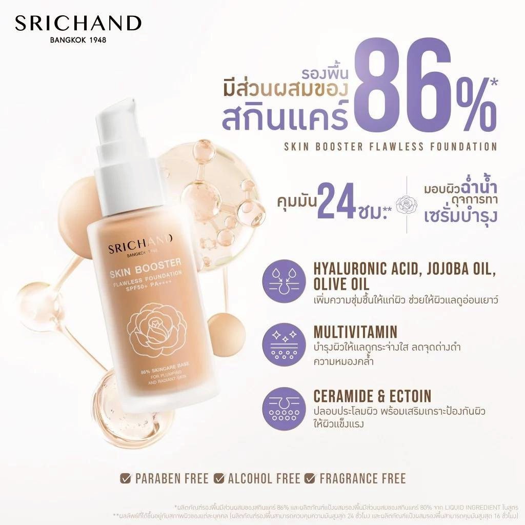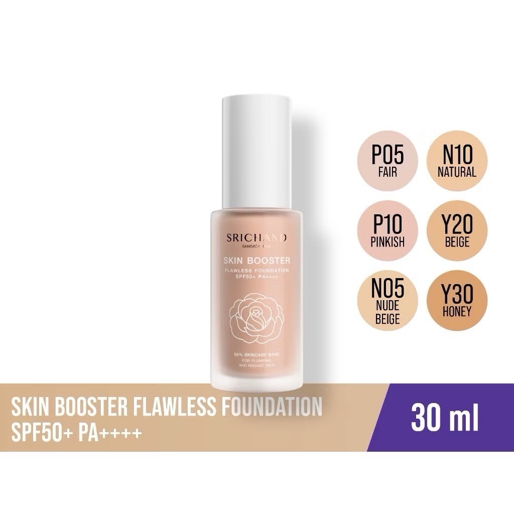 Srichand Skin Booster Flawless Foundation SPF50+ PA++++ ศรีจันทร์ สกิน บูสเตอร์ ฟลอเลส ฟาวน์เดชั่น SPF50+ PA++++ 30ml.