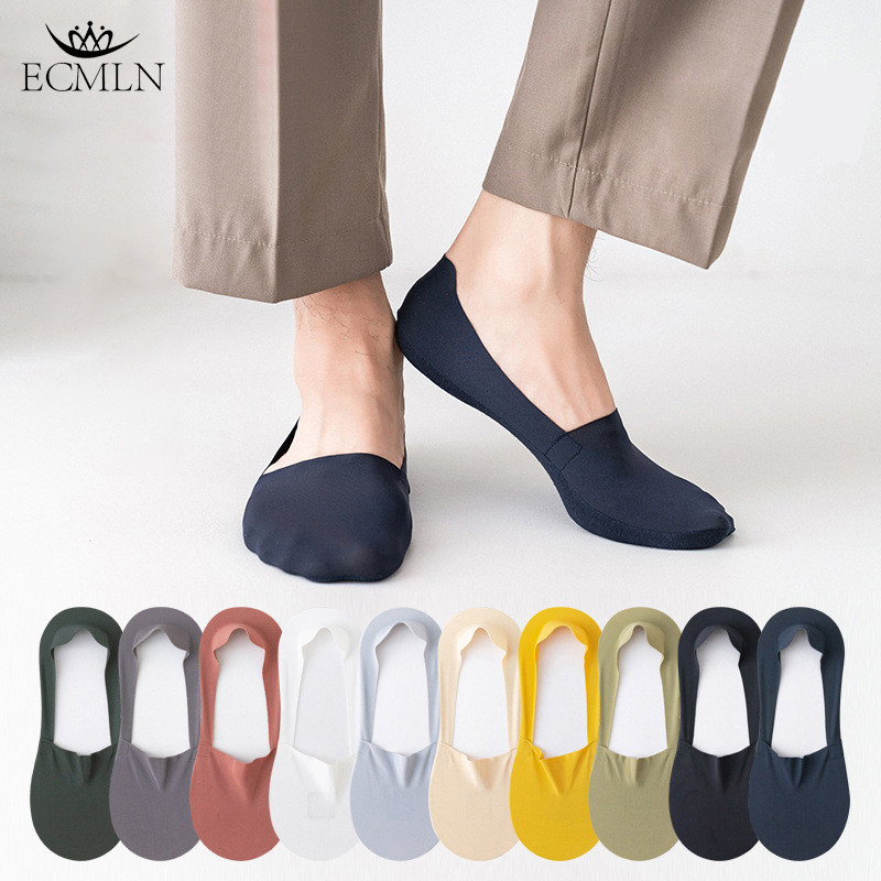 Ecmln ถุงเท้าข้อสั้น ผ้าฝ้าย ผ้าเรยอน ไร้รอยต่อ กันลื่น มองไม่เห็น คุณภาพดี สําหรับผู้ชาย