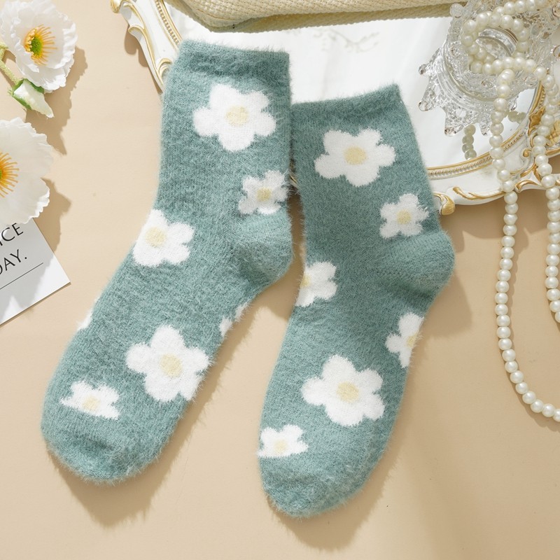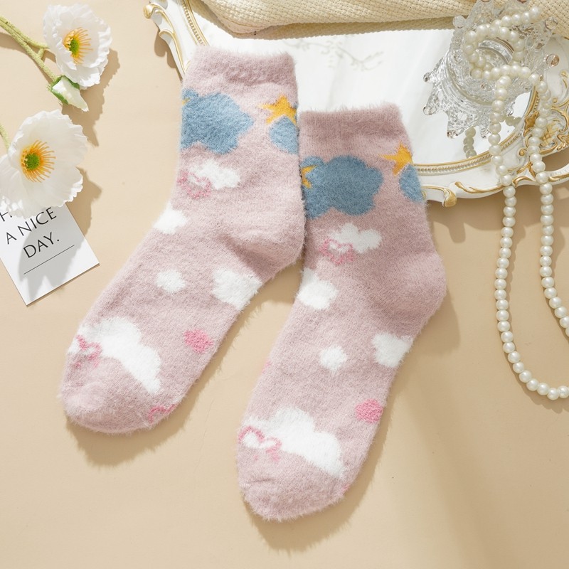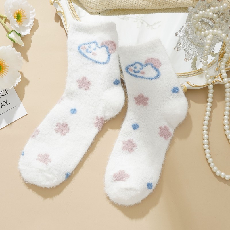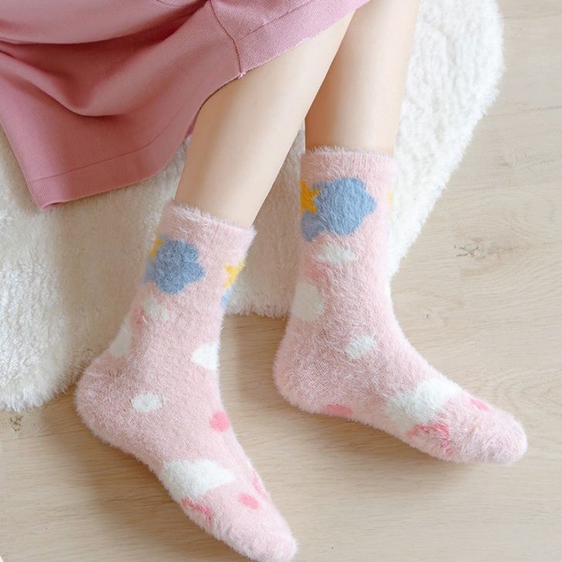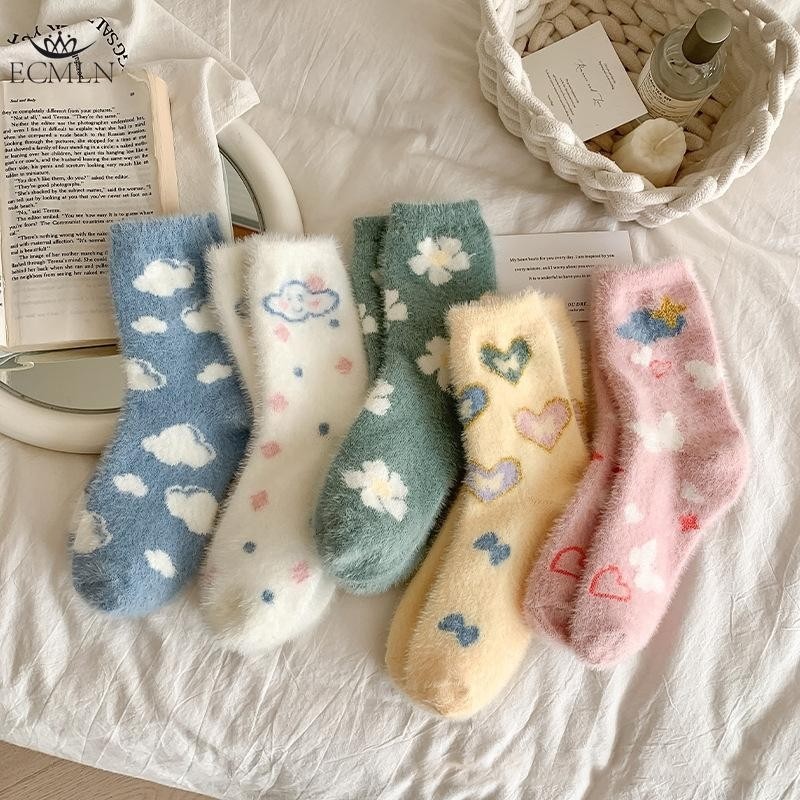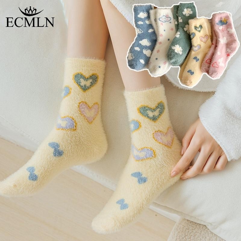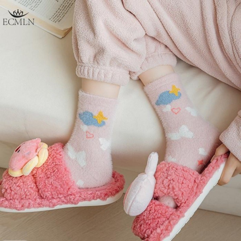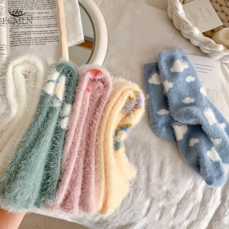 Ecmln ผู้หญิง Mink ขนแกะ Fuzzy ถุงเท้า Fluffy Plush ถุงเท้าอุ่น Sleep Soft Cozy ฤดูหนาวสาวน่ารักถุงเท้าชั้นการ์ตูน