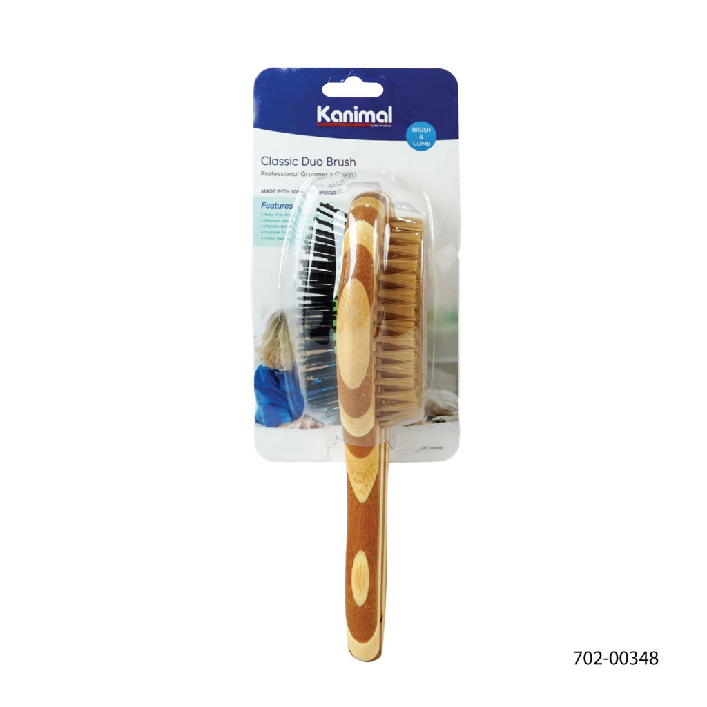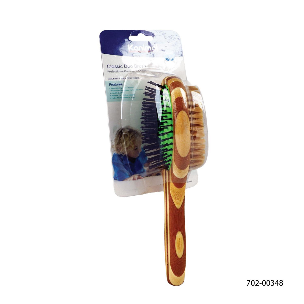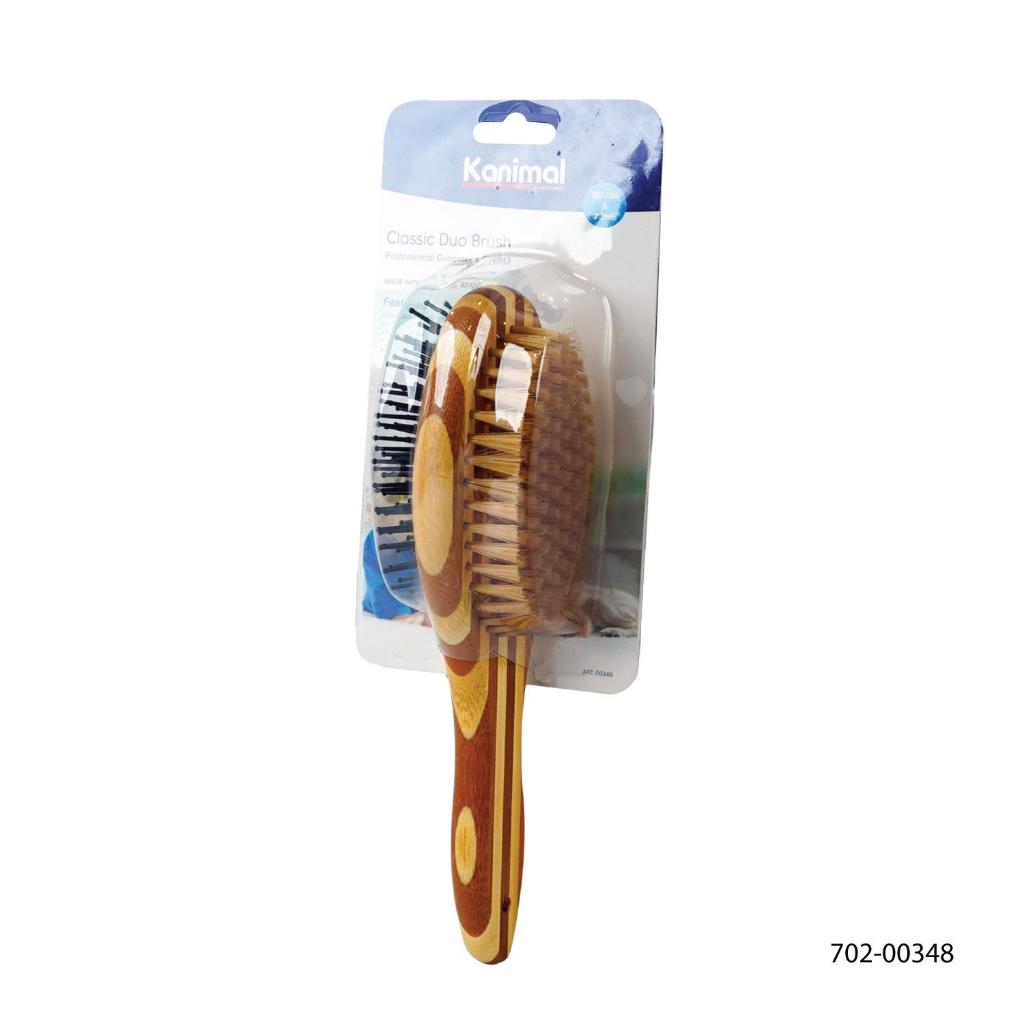 [00348] Kanimal Pet Duo Brush แปรงหวีขน 2 ด้าน (ด้ามไม้) แปรงขนหมู หวีสางขน สำหรับสุนัขและแมว Size L ขนาด 27x7 ซม.