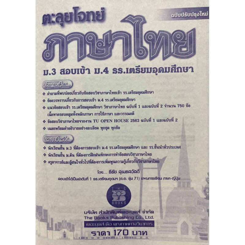 9786162583421 ตะลุยโจทย์ภาษาไทย ม.3 สอบเข้า ม.4 ร.ร.เตรียมอุดมศึกษา( ธีธัช สุเมธสวัสดิ์ )