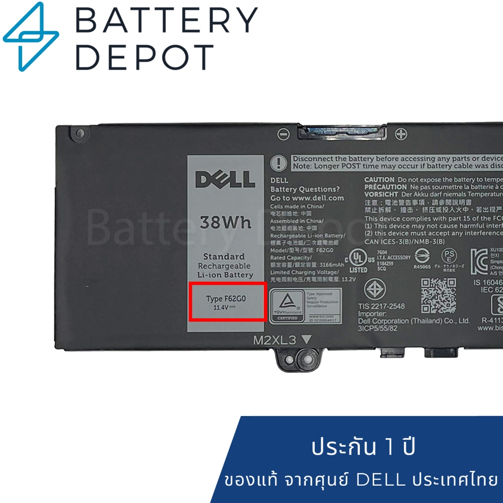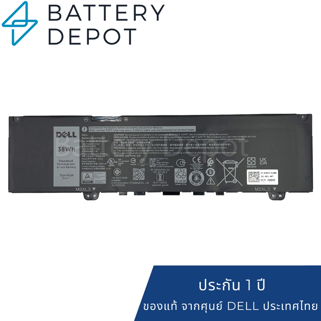 [ประกันศูนย์] Dell แบตเตอรี่ ของแท้ F62G0 สำหรับ Dell Inspiron 13 7000 7370, 5370 / Vostro 5370 Series Dell Battery