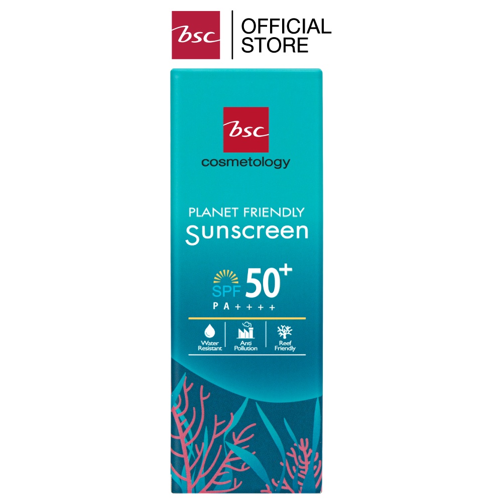 BSC PLANET FRIENDLY SUNSCREEN SPF50+ PA++++ ผลิตภัณฑ์ป้องกันผิวจากมลภาวะแสงแดด Hybrid Sunscreen และไม่มีสารเคมีที่ก่อให้เกิดปะการังฟ อกขาว ครีมกันแดด