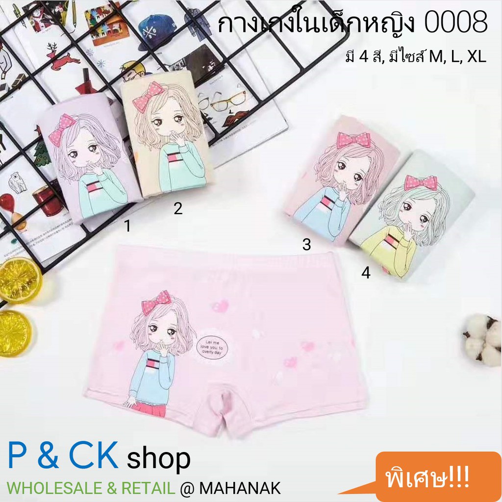 #0007, #0008 กางเกงในเด็กผู้หญิง แบบมีขา: [ราคาต่อ 1 ตัว] มีหลายสี, มีไซส์ M, L, XL (คอตตอน 100%)