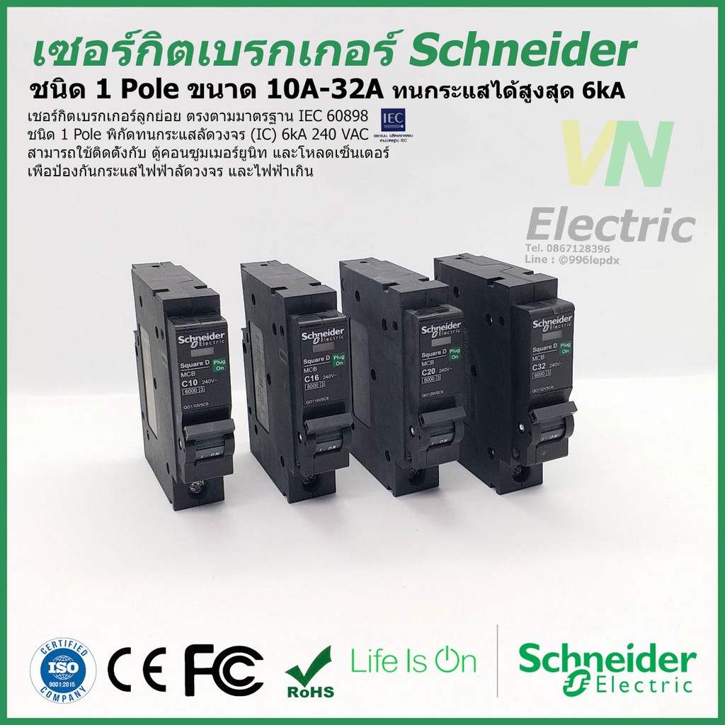 เซอร์กิตเบรกเกอร์ ลูกย่อย ชไนเดอร์ 1P 10A-32A Circuit Breaker Schneider (ราคารวม VAT แล้ว) # สามารถออกใบกำกับภาษีได้