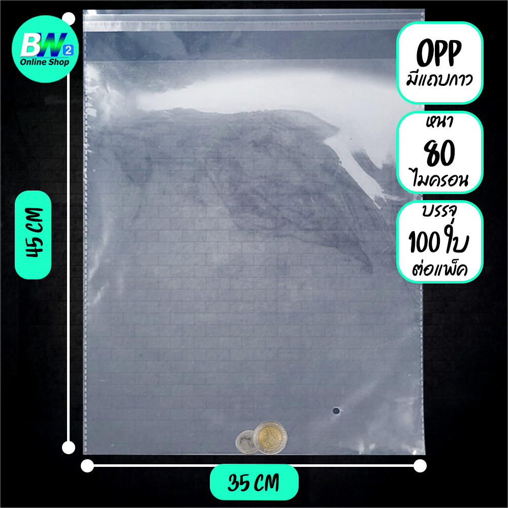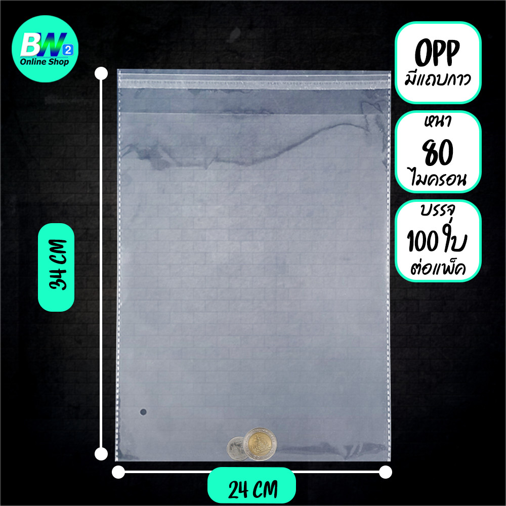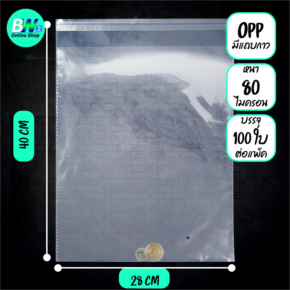 ซองพลาสติก OPP ใสเทปกาว แบบหนา (80 ไมคร อน) (ไซส์ใหญ่) (แพ็ค 100)