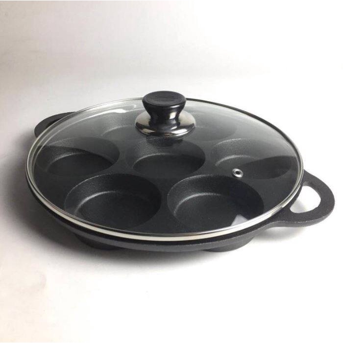 กระทะทำขนมบ้าบิ่น 7 หลุม (พร้อมฝาปิด) กระทะทำแพนเค้ก กระทะทำพิชซ่ามินิ กระทะทอดไข่ดาว