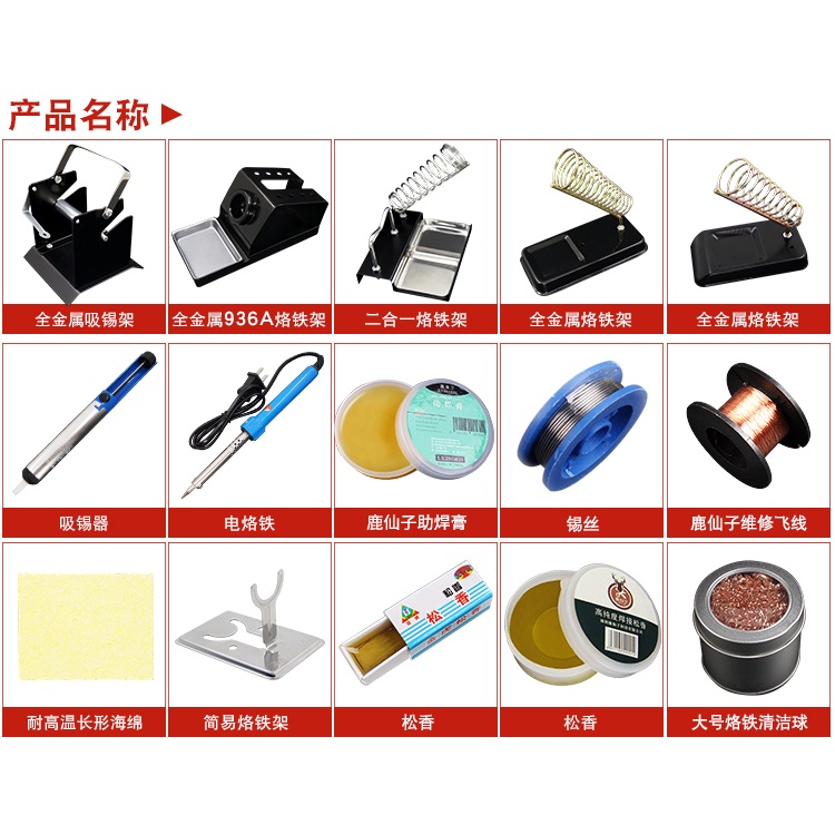 [แพ็คเกจหัวแร้ง] หัวแร้งไฟฟ้าอุปกรณ์เสริม ทั้งหมด-โลหะ ลวดดีบุกผู้ถือ โรซิน ฟองน้ําอุณหภูมิสูงบัดกรีลวดบัดกรีวางช่างไฟฟ้าบัดกรีเครื่องมื