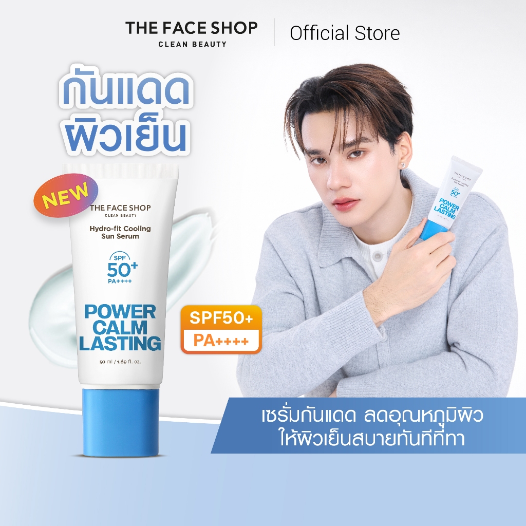 THE FACE SHOP POWER CALM LASTING HYDRO-FIT COOLING SUN SERUM SPF50+ PA++++ เซรั่มกันแดด เนื้อบาง ผิวชุ่มชื้น เย็นสบาย