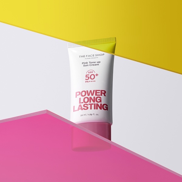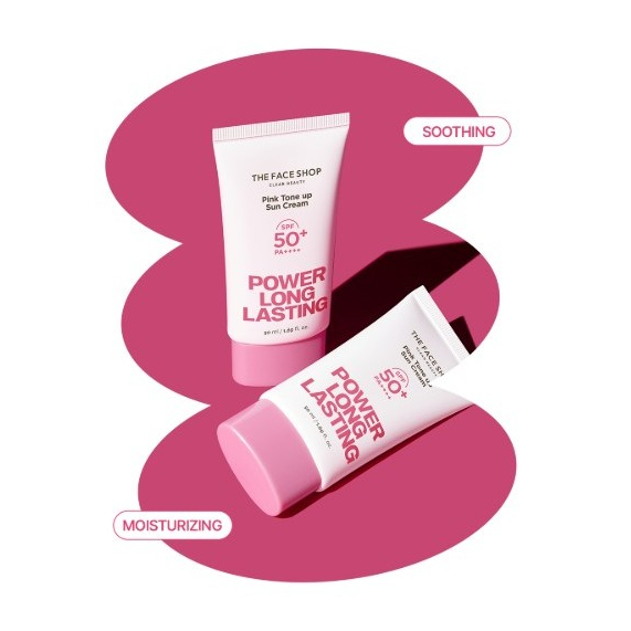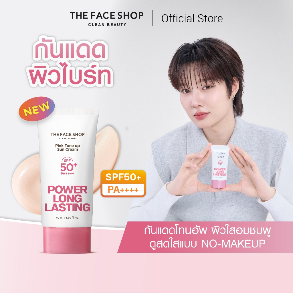 THE FACE SHOP POWER LONG-LASTING PINK TONE UP SUN CREAM SPF 50+ PA++++ กันแดดพิงค์ โทนอัพ ผิวกระจ่างใส ชุ่มชื้น อิ่มน้ำ
