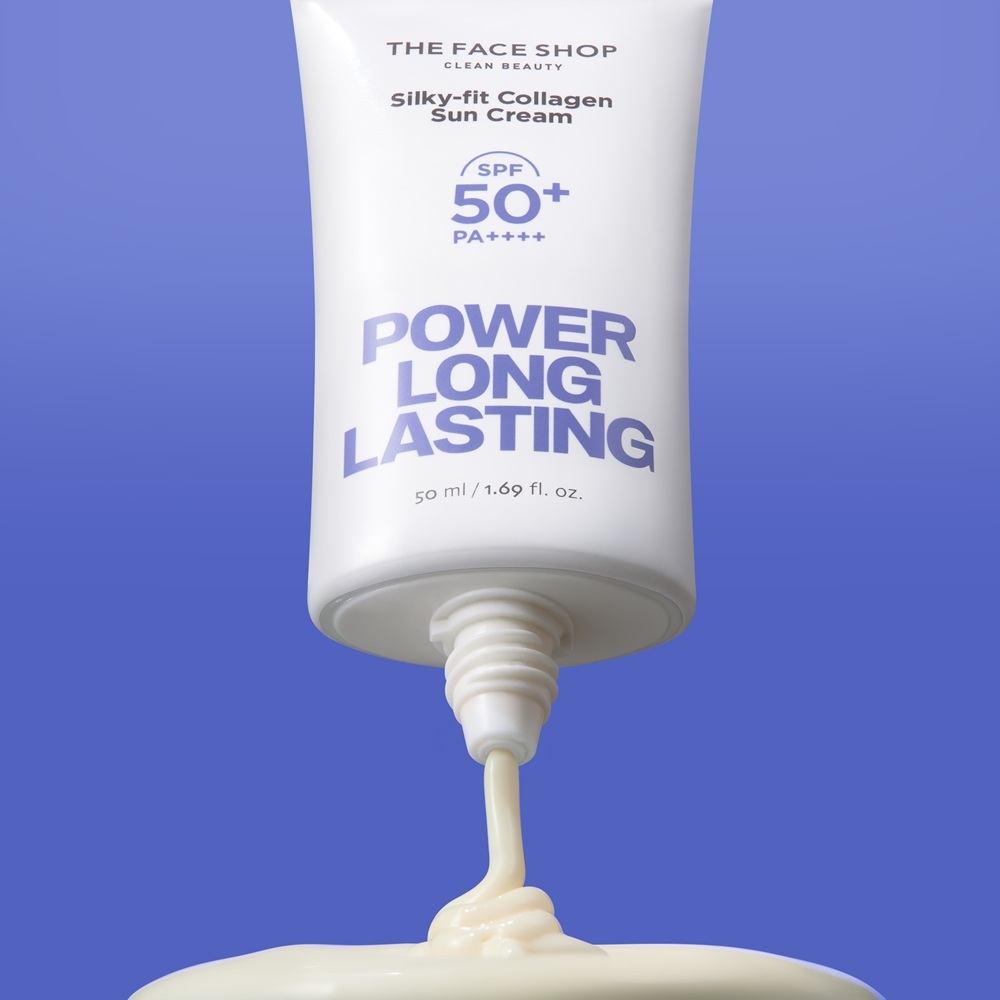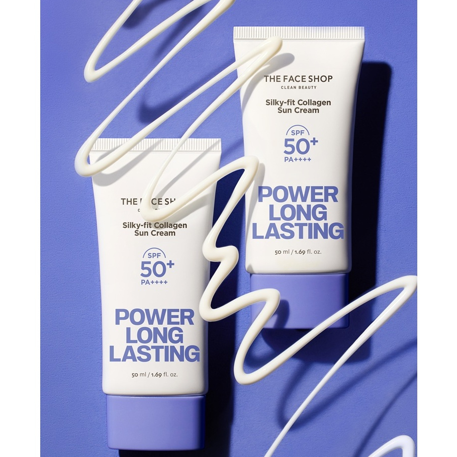 THE FACE SHOP POWER LONG-LASTING SILKY-FIT COLLAGEN SUN CREAM SPF50+ PA++++ ครีมกันแดด ลดเลือนริ้วรอยจากรังสี UV
