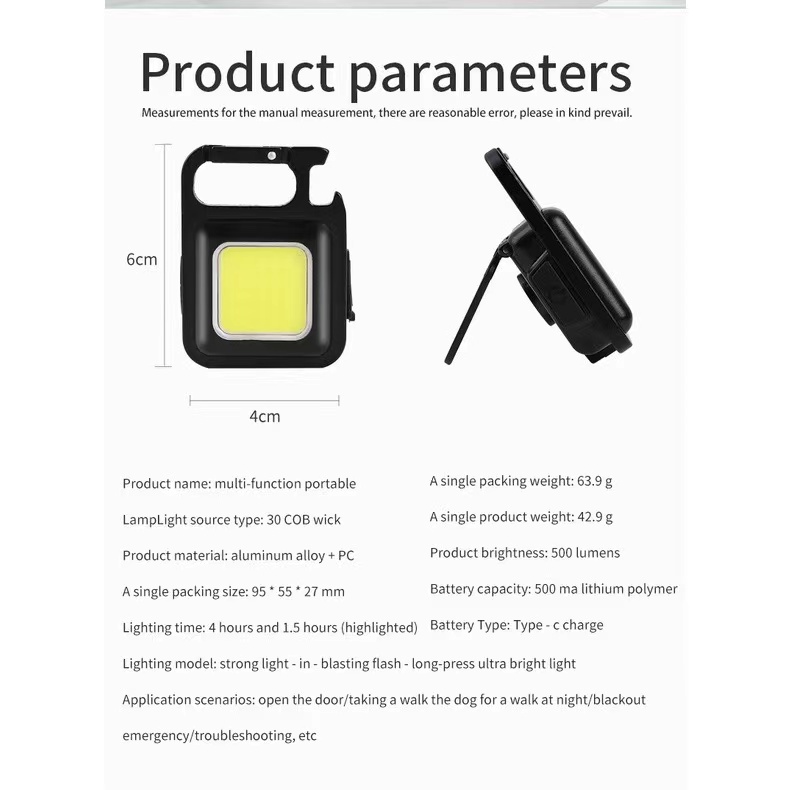 ไฟ LED ขนาดเล็กพกพาได้สำหรับตั้งแคมป์กลางแจ้งโคมไฟอเนกประสงค์สำหรับเปิดขวดพวงกุญแจโคมไฟ COB ไฟฉายฟลัดไลท์โคมไฟแม่เหล็กแร