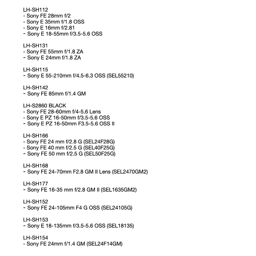 JJC รวมฮูดสำหรับเลนส์ Lens Hood SONY ( LH-SH112 LH-SH131 LH-SH115 LH-SH142 LH-S2860 BLACK LH-SH166 LH-SH168 LH-SH177 )
