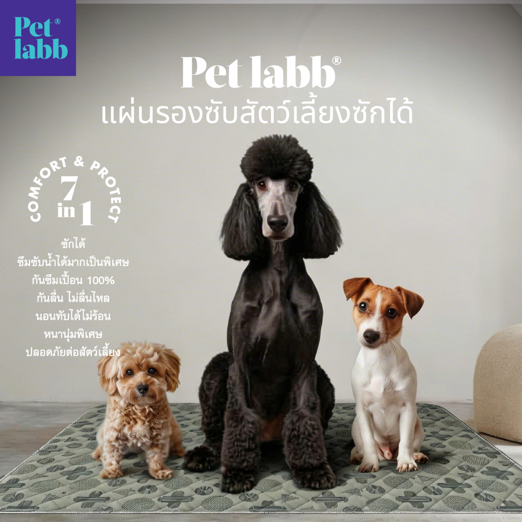 XXL90x140cmแผ่นรองซับเอนกประสงค์ซักได้Pet Labb สีเทาอ่อน ปูรองกรงปูรองถาดอาหารฝึกขับถ่ายซับฉี่กันซึม